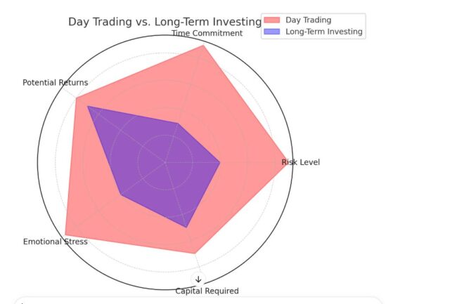 في النهاية، يعتمد الاختيار بين التداول اليومي والاستثمار طويل الأجل على أهدافك المالية، وقدرتك على تحمل المخاطر، ومدى تفرغك لمتابعة الأسواق؛ فإذا كنت مستعدًا للمخاطرة والمراقبة اليومية، فقد يكون التداول اليومي هو الأنسب لك، كما يمكنك تعلم المزيد عن فرص الاستثمار واستراتيجيات التداول من هنا.
